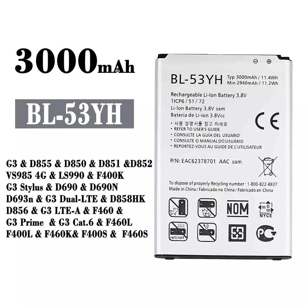 μπαταρία BL-53YH για LG G3 / D855 / D850 / D851 / D852 / VS985 4G / LS990 / F400K / G3 Stylus / D690 / D690N / D693n / G3 Dual-LTE / D858HK / D856 / G3 LTE-A / F460 / G3 Prime / G3 Cat.6 / F460L / F400L / F460K / F400S / F460S