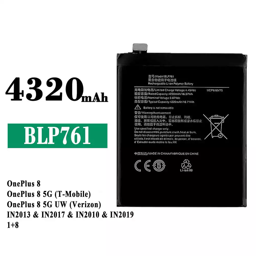 μπαταρία BLP761 για OPPO OnePlus 8 / OnePlus 8 5G (T-Mobile) / OnePlus 8 5G UW (Verizon) / IN2013 / IN2017 / IN2010 / IN2019 1+8
